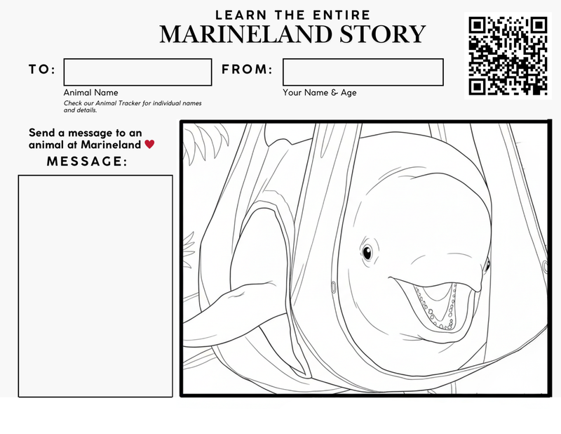 - Participate in our coloring page campaign - send a note of support to an animal stranded at Marineland and the teams providing daily, on-the-ground care.